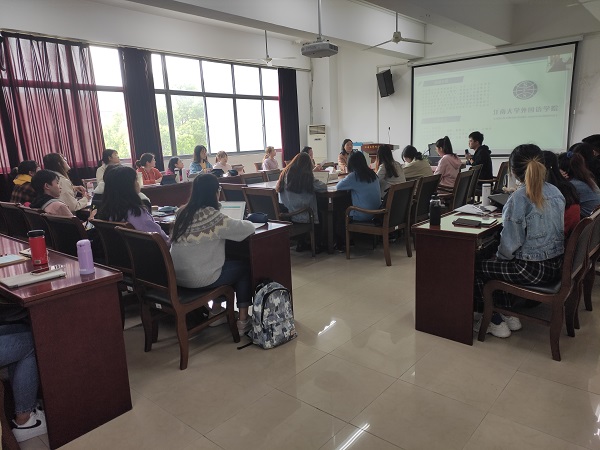 2021年4月12日下午3点30分,yl7703永利集团“研途奋进”首期活动在文科楼A349举行,本次活动主题为学术分享,我院方文开院长、谢竞贤副院长全程观摩了本次活动。2020级全体硕士研究生及于线下参与了本次活动,2018级、2019级全体硕士研究生通过钉钉直播参与了本次活动。部分感兴趣的英语专业大四本科生也闻讯前来现场聆听分享。