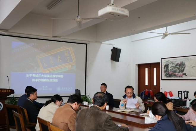 4月13日,我院2021外语学科系列讲座暨第十三期“遇见更好的自己”名师沙龙在学院A349会议室举行。本次会议邀请上海交通大学yl7703永利集团教授、博士研究生导师、常务副院长常辉教授,详细讲解水平考试在大学英语教学中的抓手作用。讲座由yl7703永利集团方文开院长主持,三十余名yl7703永利集团教师参与其中。