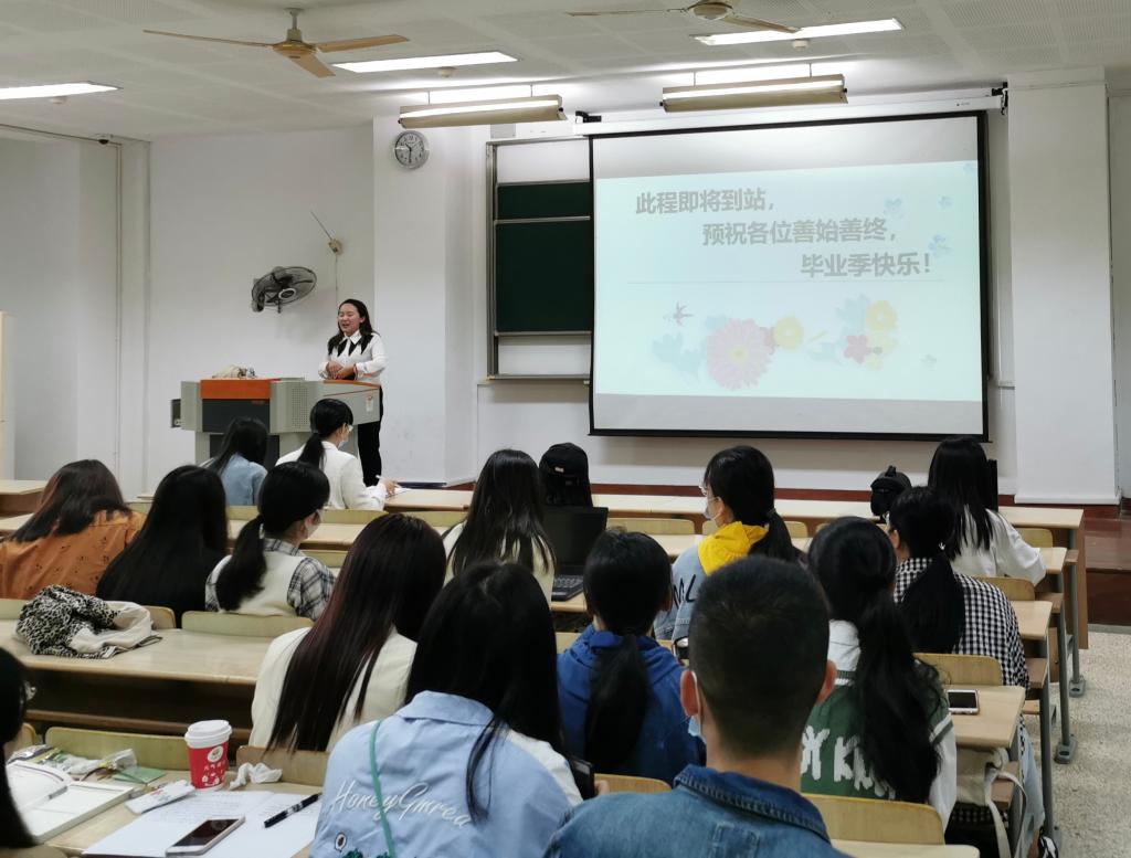 会议伊始,辅导员张圆老师对前两个月的实习进行了一个简短的总结,提醒实习报告上交要求。然后张老师展示了毕业生五、六月份的工作时间轴,并一一说明相关事项,促使学生对离校毕业重要事宜树立清晰地认知与规划。
