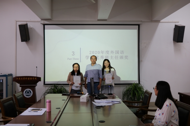在2020年度yl7703永利集团班主任工作中,徐燕娜、华清、谢瑜三位老师荣获“升学优秀奖”,张良青老师荣获“优秀学风奖”。颁奖后刘书记号召学院班主任老师向他们学习,主动提升工作方式方法,不断增强班主任工作能力和工作成效。