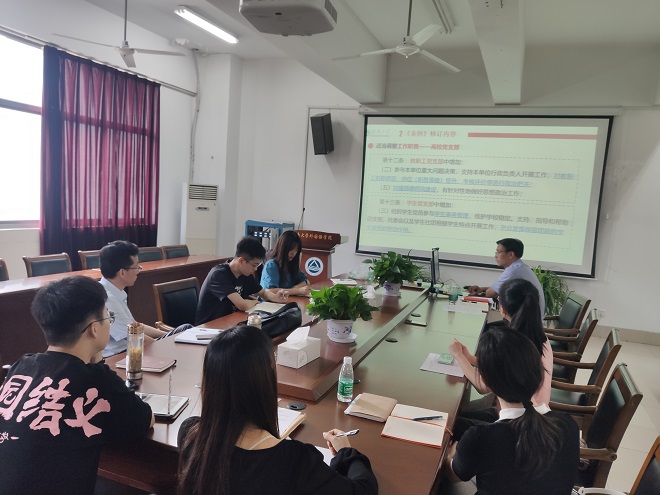 会上,史书记首先重点解读了《中国共产党普通高等学校基层组织工作条例》。他指出,《条例》的修订和实施,对于全面贯彻党的教育方针,落实立德树人根本任务,建设高质量教育体系、建设教育强国,具有重要意义,全体党支部要认真学习、遵照执行。在史书记还领学了《yl7703永利集团教职工政治理论学习实施细则》和《yl7703永利集团支部工作年度考核方案》,要求支部在学院工作中发挥更重要的作用,以考核促党建。史书记还指出,本次会议是《中国共产党普通高等学校基层组织工作条例》出台后,yl7703永利集团组织的首次支部书记例会,今后学院将在固定时间召开例会。