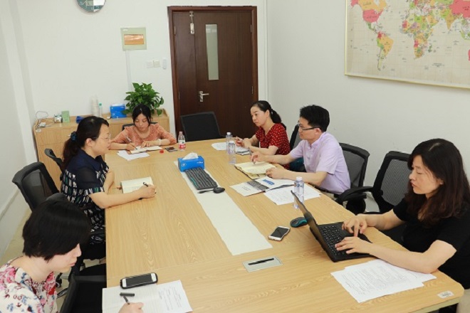 6月1日下午,为全面提升外籍教师教学管理工作成效,落实学校巡察组有关加强外籍教师意识形态维度监管的整改建议,yl7703永利集团副院长朱义华、教学秘书王琰玲与外教联络员曹乐老师等赴国际交流合作处进行了调研与交流,国际交流合作处副处长蔡建英、外国专家科孙梦黎科长与荣艳老师出席了交流会。