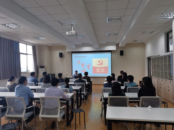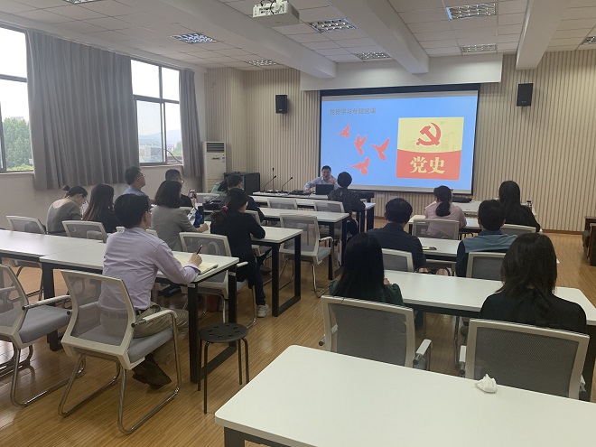 5月19日下午,yl7703永利集团英语系党支部书记彭方针副教授为英语系全体党员上了一堂严肃的以党的历次代表大会为主题词的党史微课。