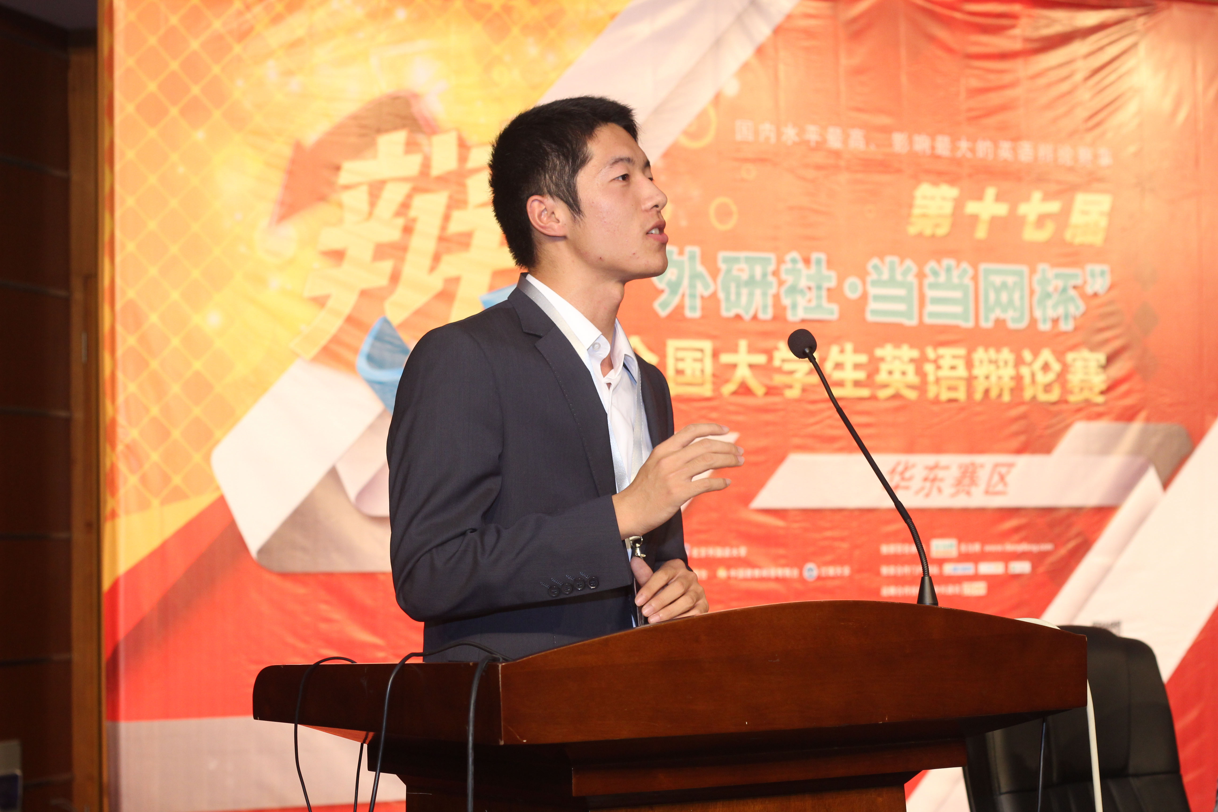 “外研社杯”全国英语辩论赛自1997年创办以来,作为国内创办最早、规模最大、水平最高、影响最广的全国性英语辩论赛事,已成为选拔国内优秀辩才、展现当代大学生英语风采的良好平台。目前全国已有累计超过1000所大学直接参与过外研社杯,每届大赛都会得到国际辩论教育协会、中国英语教学研究会的支持。外研社杯全国英语辩论大赛常年为世界五百强所关注,早已成为诸多企业高管和人力资源总监前来“猎才”的“试金场”。延续往届大赛“英国议会制”辩论形式和具有国际化广度深度的大赛辩题传统,此次比赛一如既往地要求选手不仅要具备雄辩能力,更要具有优秀的语言表达能力、逻辑思辨能力、快速反应和渊博学识等。为扩大比赛影响,鼓励更多的学生参与,本届大赛将分三大阶段、在六大赛区进行,此次在我校举行的就是华东赛区决赛。