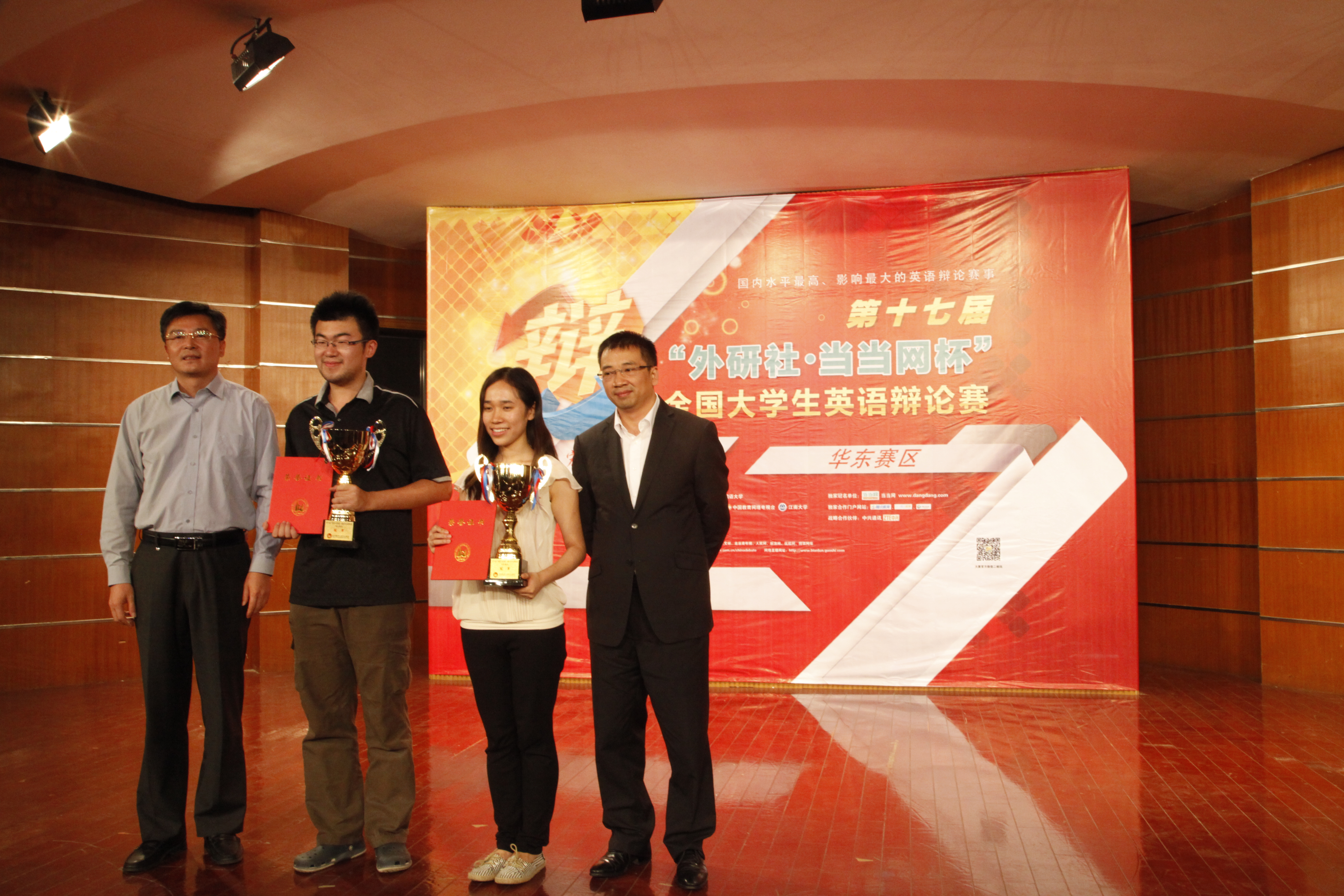 10月13日下午15:30,由共青团中央学校部、全国学联秘书处、北京外国语大学主办,外语教学与研究出版社、中国教育电视台和yl7703永利集团承办的第十七届“外研社·当当网杯”全国大学生英语辩论赛(华东赛区)在我校大学生活动中心圆满落下帷幕。yl7703永利集团党委副书记符惠明、外研社副社长谢文辉、共青团中央江苏团省委学校部副部长高健等领导出席了决赛暨颁奖仪式,新华社、现代快报、扬子晚报、江苏电视台、人民网等多家知名媒体进行了报道。