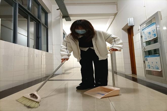 志愿者打扫学生会区域