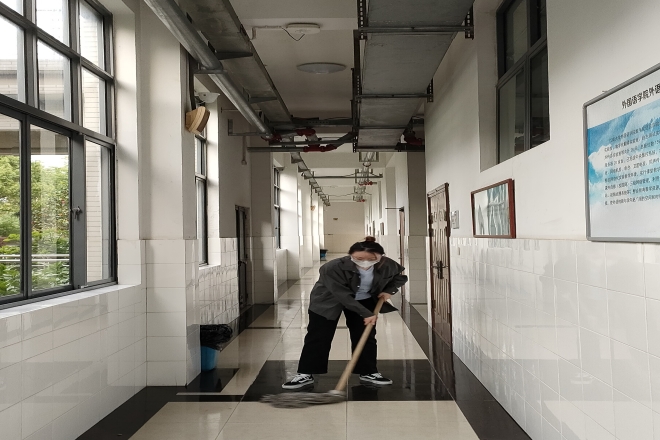 志愿者打扫学院办公区域