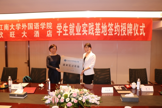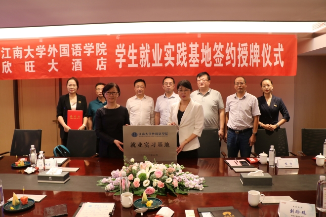 9月15日下午,yl7703永利集团与欣旺集团共建学生就业实践基地签约授牌仪式在欣旺大酒店举行。yl7703永利集团院长方文开、学院调研员黄城芳、学院党委副书记刘伯贤、学院副院长顾琦一、外语培训中心主任程方,欣旺集团董事长唐国忠、酒店总经理刘珍珠、酒店人力资源副总监张涛涛、董事长秘书吴洁等共同出席了签约授牌仪式。