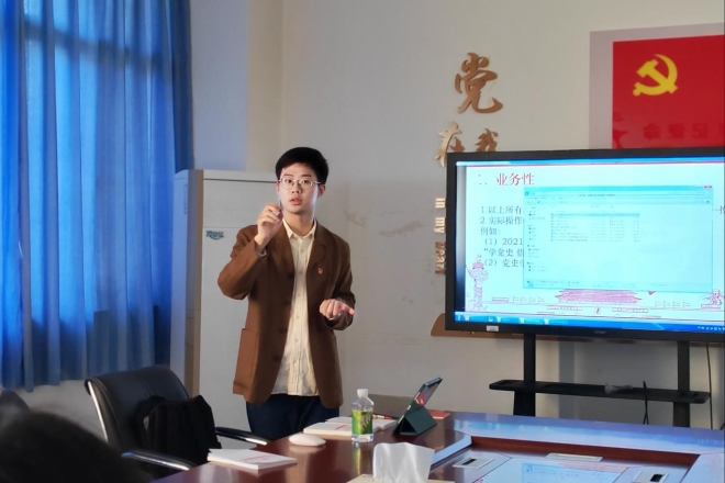 接着,张龙飞同学向同志们介绍了党支书应该精通的组织业务能力,如组织生活、发展与党员教育和思想政治与群众工作等。其中,党的组织生活应遵循组织生活会制度、民主评议党员制度、谈心谈话制度和党员活动月制度,主要包括“三会一课”并应反映热点与时事,最后按照党支部工作纪实规范如实整理记录在支部手册上。此外,张龙飞同学还详细介绍了入党流程及yl7703永利集团“三投票三公示一答辩”的选举考察制度,并梳理了相关时间节点。