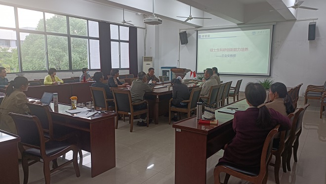 接下来,培训进入第二环节。谢竞贤副院长根据学校的通知和文件,带领大家一起学习《yl7703永利集团博士硕士学位论文抽检及结果处理办法》和《yl7703永利集团研究生导师管理办法》,同时传达了研究生院例会精神、要求以及研究生教育工作的发展趋势。老师们认真聆听培训内容,领会文件精神。文件学习后,由学院王金安教授做了一场题为《硕士生科研创新能力培养》报告,王教授在硕士培养方面经验丰富、培养了一批高端人才。王教授主要介绍了他培养硕士研究生的教育理念和具体做法。王教授表示,作为导师,首先要做好硕士研究生的第一责任人,要做学生的良师益友,关注学生的生活,爱护学生,关心学生,并分享了如何引导学生读好书、如何引导研究生摆正心态、如何激发学生科研积极性、如何培养研究生的研究方法、如何提高研究生的写作水平等的具体做法。王教授强调慢工出细活,既要苦干、也要巧干。最后,王金安教授分享了指导学生考博的经验体会,得到了与会导师们的高度认可。随后,导师们就文件和讲座内容进行了学习心得的交流:要进一步践行文件精神,认真做好导师工作;王金安教授能够培养出多位应届生考上博士是默默付出、静心读书、共同成长的水到渠成的结果,很多经验和做法值得学习与实践。