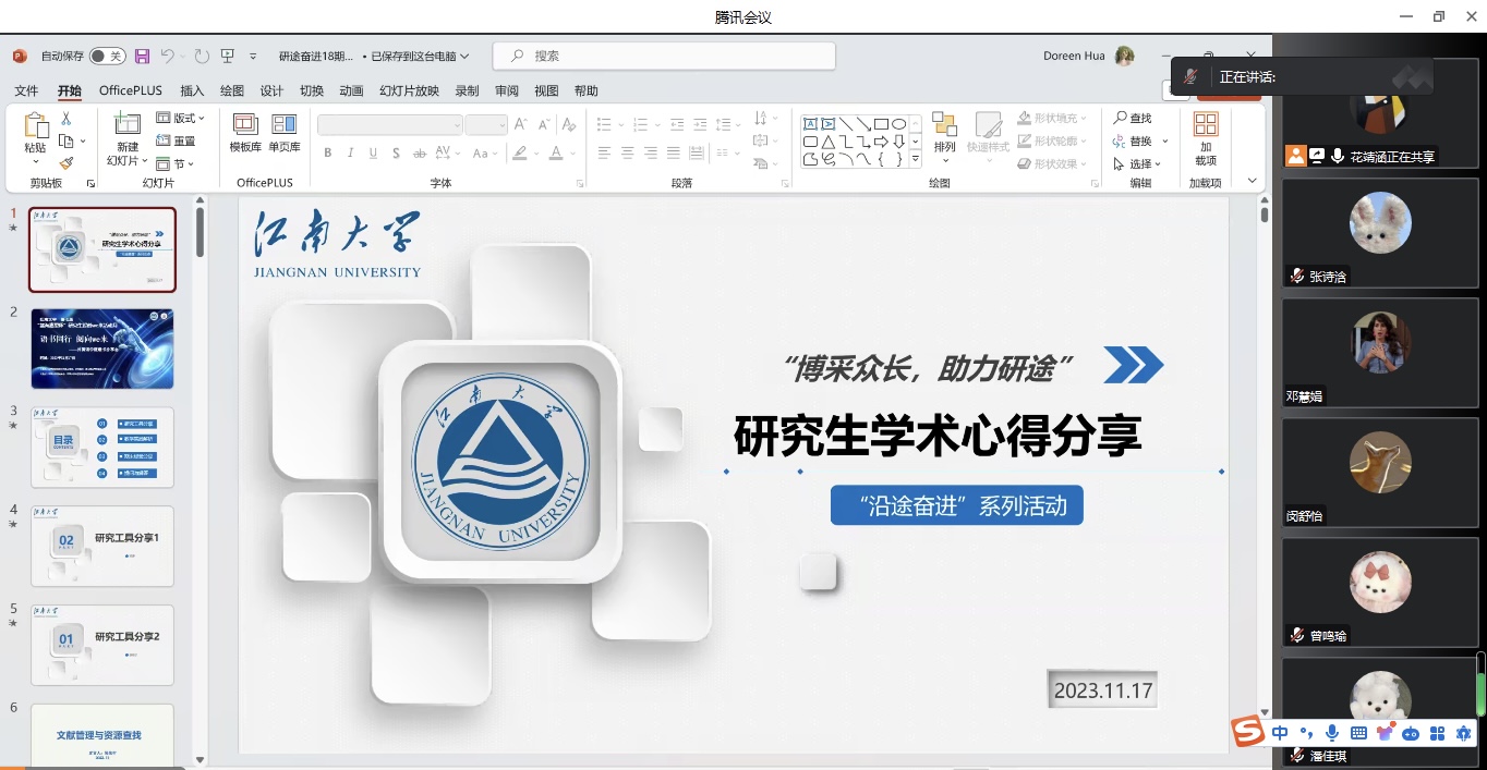 2023年11月17日19:00,yl7703永利集团“研途奋进”第十一期活动在腾讯会议平台成功举行,本次活动主题为“博采众长,助力研途”学术生活心得分享会。22、23级硕士研究生线上参与了本次活动。
