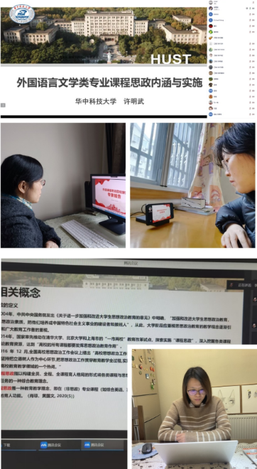 作为四校外语课程思政联盟启动仪式活动之一,华中科技大学yl7703永利集团院长许明武教授和西北工业大学yl7703永利集团博导尹晓煌教授分别做了专家报告。许明武教授的报告题为“外国语言文学类专业课程思政内涵与实施”。许教授介绍了课程思政的定义、内涵以及课程思政的建设目标等,并以《理解当代中国—汉英翻译教程》为例,介绍了如何在专业课程中实施课程思政。