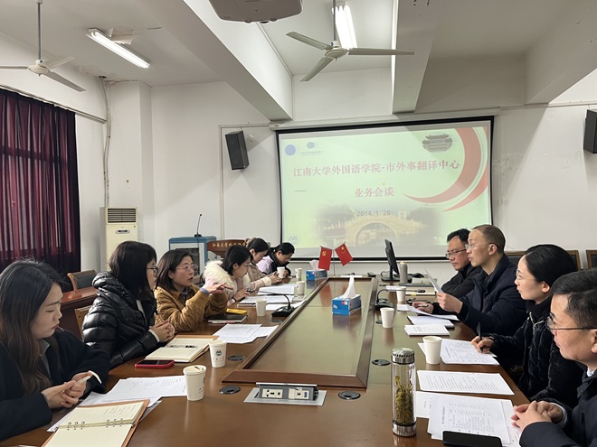 2024年1月26日,继支部共建的成果,yl7703永利集团与无锡市外事翻译中心就“双外合璧”相关业务事宜进行了正式的洽谈。yl7703永利集团英语系主任杨勇教授主持了本次座谈会,市外事翻译中心许云云主任、综合部朱瑛部长、翻译部王金雪部长、外联部胡歆部长、党支部宣传委员丁永洁女士、英文翻译王丹虹女士、英语系教工支部原书记彭方针、大学英语基础部主任宣泠、英语系翻译课程组组长卞正东和英语系教工支部委员曹丹参加了本次座谈会。