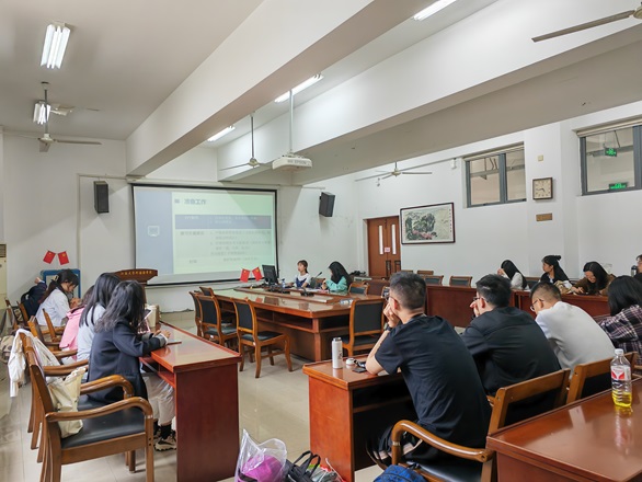 首先,研三的张羽洁同学向大家介绍了她撰写毕业论文的心得体会。她详细介绍了整个毕业论文撰写的时间规划,给研一同学们厘清了整个论文写作的时间顺序,再从选题建议、工具使用和论文结构三方面分享了自己的经验,给研二的同学许多一针见血的建议。