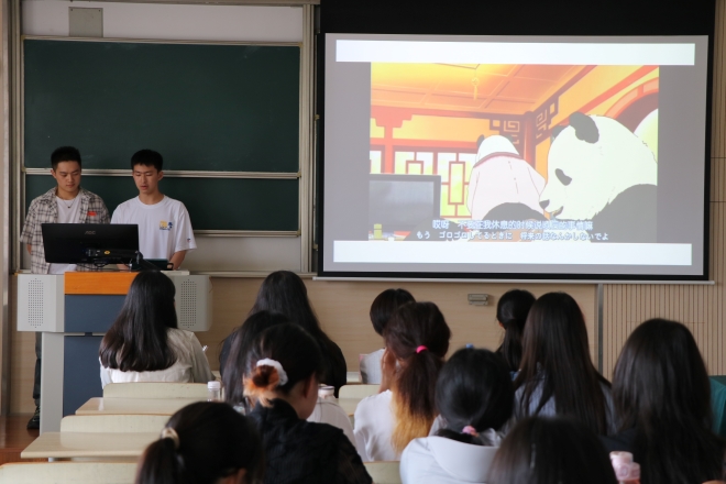 决赛于5月22日下午在第二教学楼举行,分为日语赛道配音、英语赛道配音、评委点评三个环节。本次大赛邀请到了无锡新东方前途出国的李天怡、柏冬东老师担任决赛主评委,yl7703永利集团“十佳大学生”苏婷、yl7703永利集团学生会执行主席曾欣谊担任学生代表评审。本次决赛配音内容选材联通中外,内容活泼,寓意深刻。日语赛道的参赛队伍选择对中国史剧进行翻译与配音,将中国元素融入配音作品,充分展现外语人的历史担当;英语赛道的参赛队伍以流畅生动的语音语调为我们带来一场绝佳的视听盛宴,一人分饰多角,为原作赋予全新的表达与生机。
