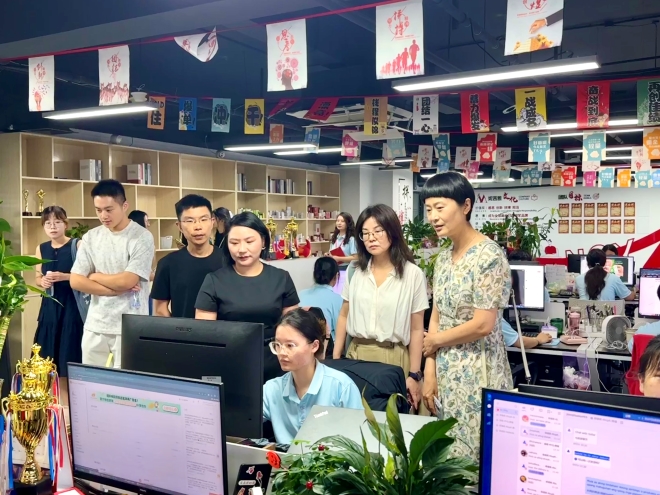 为深入贯彻落实党中央、国务院关于高校毕业生就业工作的决策部署,根据《yl7703永利集团2024年大学生就业工作实施方案》要求,7月11日上午,yl7703永利集团党委书记李荣华、党委副书记刘伯贤、辅导员苗文建、朱家烨以及研究生、本科生代表前往无锡妮茜雅电子商务有限公司开展访企拓岗促就业专项活动。