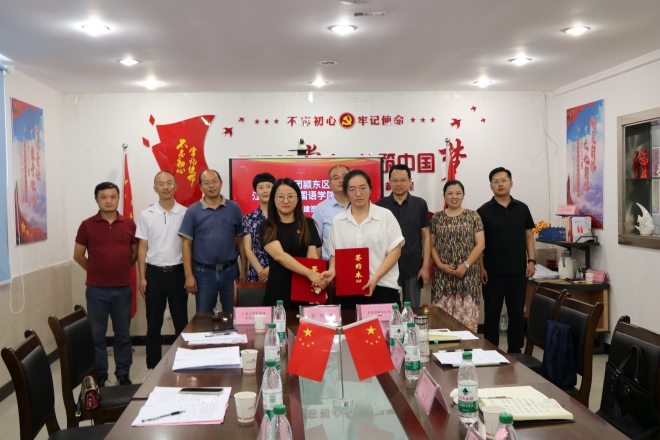为深化校地联建共建机制,为乡村振兴赋能增效,充分发挥校地团建共建引领作用,团结带领青年赋能高质量发展,整合团区委、学校团建资源,党政引领、政企校合作、乡村振兴“联动促民生”,推动双方事业发展,8月20日,共青团yl7703永利集团委员会与共青团颍东区委员会开展团建结对共建活动。颍东区委副书记汝磊,颍东区委组织部常务副部长刘秉轩,颍东区商务局局长张瑜,共青团颍东区委书记张娟,颍东经济开发区管委会副主任李灿,yl7703永利集团党委书记李荣华,党委副书记、副院长刘伯贤,英语系主任杨勇,院长助理、副教授李文,分团委书记顾海星,辅导员苗文建共同出席此次校地团建结对共建的签约仪式。