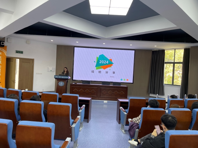 学院本科生、研究生参加本次分享会。活动开始,入职无锡市玉祁中学的24届张羽洁为在座的同学们详细介绍了备考教师的过程。她特别强调了备考期间要密切关注考试信息,同时分享了自己入职后的感受以及一名合格的英语教师所应具备的基本素养。