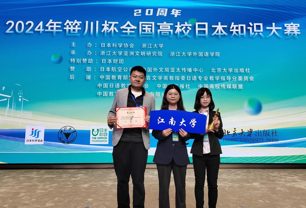 决赛环节,面对南京大学、暨南大学等强劲对手,三名参赛选手安之若素,稳定发挥,最终取得了团体赛二等奖的优异成绩,在江苏省各参赛院校中名列第1。继去年我校在该赛事上取得重大突破后三位选手复创佳绩,再续嘉话,有力践行了我校日语专业“实践育人”的教育理念。