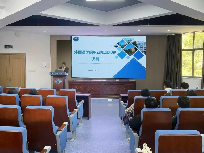 经过前期自主报名与学院初评两个阶段,共有8名同学进入决赛答辩展示环节决赛。答辩展示过程中,选手们从人职分析、环境分析、职业规划、评估调整等方面进行条理清晰、合理明确的阐述,展示结束后,评委老师根据职业规划书以及现场展示进行提问,各位选手的精彩表现获得了评委与现场观众的一致认可。本次决赛答辩中,选手将职业规划聚焦于教育、对外贸易、文化传播、新媒体等领域,充分展示了外院学子在新形势下多元的求职观。
