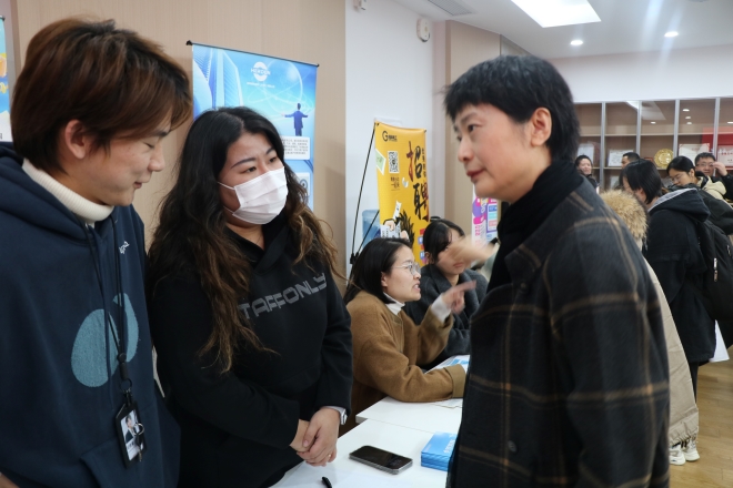 本次招聘会吸引江苏国泰华盛、新东方教育、弘元绿能、无锡金丽洁等十余家用人单位参会,涵盖教育培训、贸易、快销等诸多行业。下午14点,在君金报告厅举行企业宣讲会,参会企业依次上台,对企业情况、岗位招聘、福利待遇等进行介绍。宣讲会结束后,在学院锦洲报告厅举行招聘会,学院2025届毕业生、2026届实习生及低年级同学也来到会场学习交流。求职学生手持个人简历,与意向企业沟通交流,就岗位薪资待遇、晋升渠道、企业文化等进行详细地了解,并认真听招聘企业的意见。