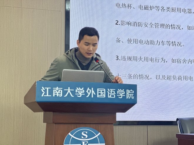 首先,苗文建结合《yl7703永利集团课程考核与管理实施细则》、《yl7703永利集团学生违纪处分规定》,向大家介绍了诚信考试的基本要求和重要性,强调了考试作弊的严重后果,通过列近期学生发生的考试作弊案例,引导学生们从中吸取教训,认真复习备考,树立诚信考试观念。冬季气温降低,学生宿舍用电安全问题进一步凸显。会议上,苗文建结合学校的《关于加强冬季防火、用电安全管理的通知》、《关于开展学生宿舍冬季用电安全专项检查的通知》,强调了宿舍严禁使用违章电器,严禁违规用火用电等行为。