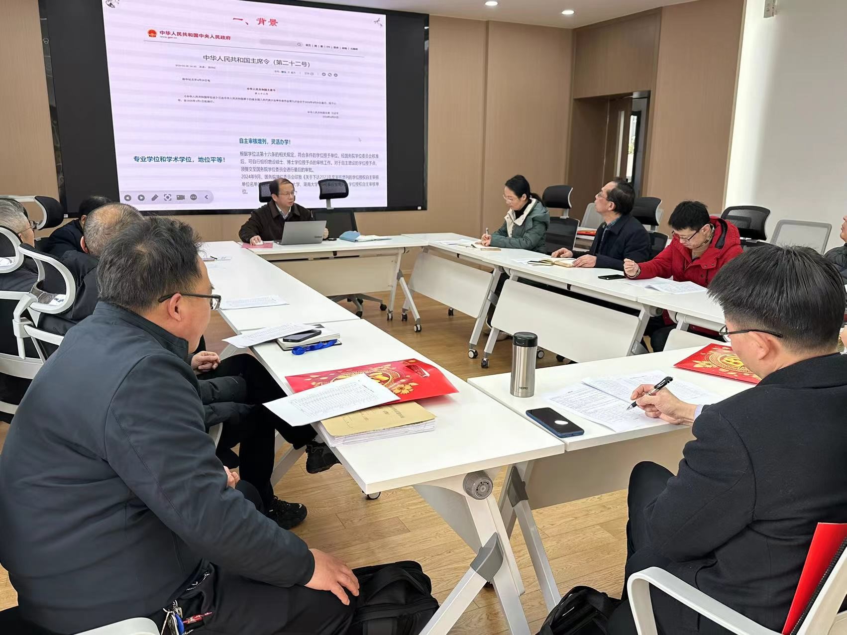 首先,谢竞贤副院长介绍了MTI硕士点的申报背景和过程,并对MTI课程计划和申报表做了简要说明,随后李学宁主任详细介绍了开设MTI课程在国家战略发展下的背景、价值和原则,提出了课程开设新思路,及建立红色实习基地等提议。