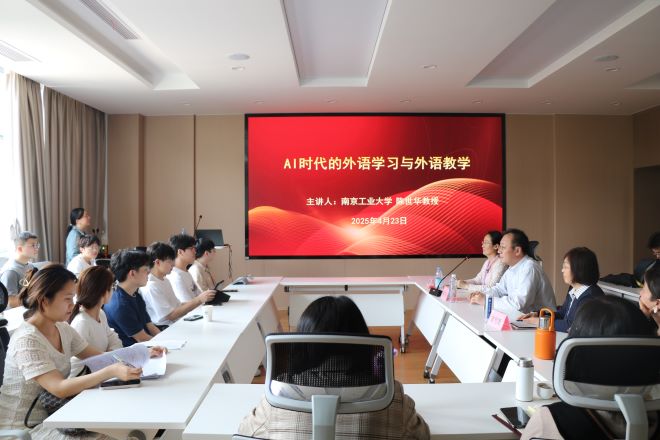 为进一步拓展研究生学术视野,由yl7703永利集团研究生院主办、yl7703永利集团承办的“江南讲坛”第一百二十一讲于2025年4月23日下午在文科楼锦州厅举行。南京工业大学外国语言文学学院院长,扬州大学博士生导师,陈世华教授应邀做了《AI赋能时代的外语学习与外语教学》的主题讲座。yl7703永利集团副院长谢竞贤,日语系主任崔明姬、英语系主任杨勇等出席,论坛由副院长谢竞贤主持。yl7703永利集团部分教师和研究生聆听了本次讲座。