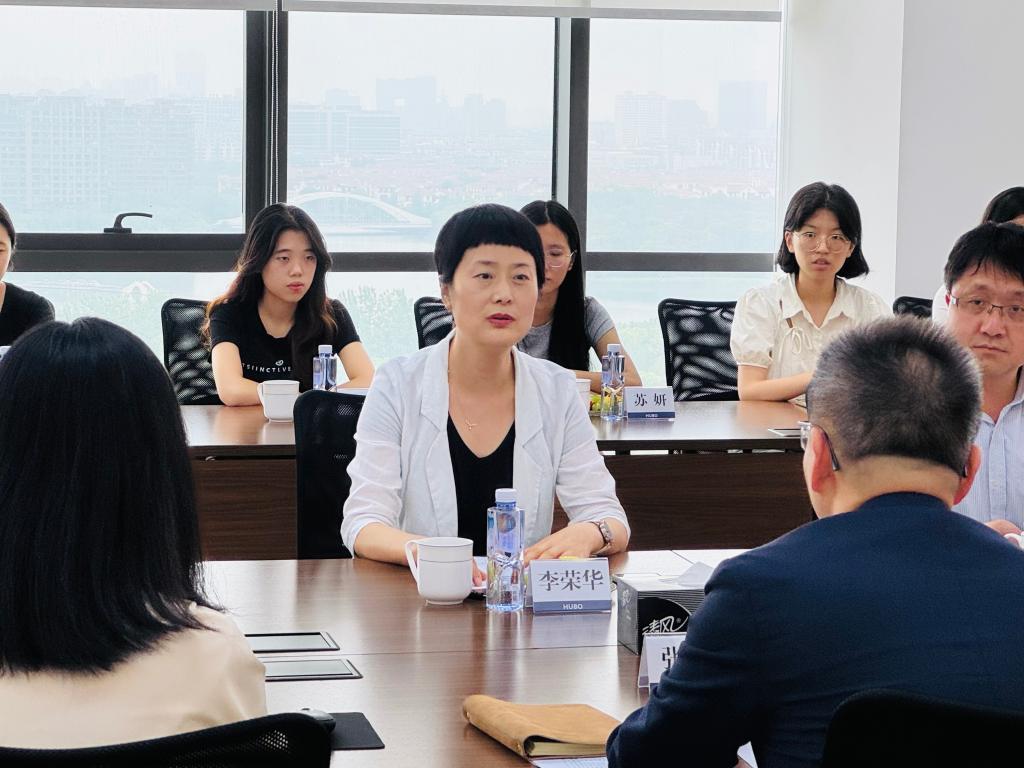 在交流环节,双方围绕人才培养、就业育人等话题展开交流。参会同学围绕“实习工作”、“成长发展”、“能力提升”纷纷提问,张斌结合自身的工作经验给予了耐心的解答和分享。交流结束后,学院一行参观了江苏国泰汉帛实业的产品展示区和办公环境,深入了解了公司运营情况与企业文化。