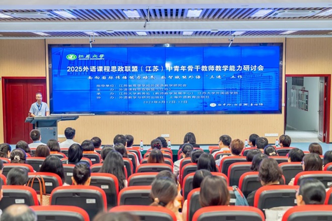 会议由外语课程思政联盟(江苏)主办,江苏大学教务处(教师教学发展中心)和yl7703永利集团承办,外语教学与研究出版社和上海外语教育出版社协办。会议以“面向国际传播能力培养数智赋能外语‘三进’工作”为主题,分为专家报告、留学生分享、圆桌论坛、工作坊研讨、教学设计展示五个部分,探讨如何面向国家战略,在大学外语教育中落实“三进”工作,培养学生的国际传播能力。
