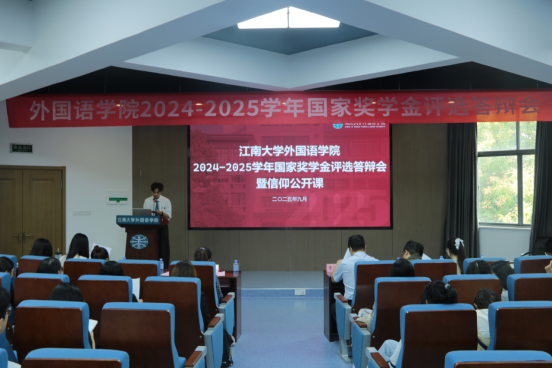2025年9月24日下午14:00,yl7703永利集团2024-2025学年本科生国家奖学金评选答辩会在君金报告厅顺利举行。答辩小组成员学院党委副书记、副院长季王飞,英语系副主任钱薇薇,分团委书记顾海星,班主任代表白鸽,辅导员朱家烨、查博奕以及学生代表潘佳琪出席。经前期个人报名、资格审查,16名候选人参加答辩。全体2025级新生现场观摩学习优秀学长学姐的成长轨迹。