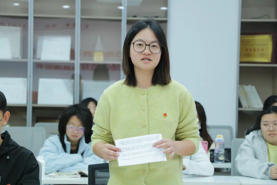朱彤围绕“十五五”规划有关高水平对外开放等重点内容开展主题学习,引导同学们深化对外语专业服务国家战略的理解,强化以语言服务时代、以专业贡献社会的责任担当。鲍润怡同学带来题为:Striking the Waves: Chinese Wisdom’s Global Voyage的英文演讲。她以中国针灸走向世界为例,以专业素养展现出外语青年面向世界的开放姿态。“语翼赋农”实践团队长杨炎学带领同学们现场开展双语直播助农模拟展示,通过中英双语介绍农产品、模拟乡村产品推介,以真实场景呈现外语学习在推动乡村产业发展中的实践价值和具体应用。沙亦桐同学、高赵一涵同学分别围绕“双语助农直播”“跨文化交流项目”做经验分享,沙亦桐介绍了团队在直播调研、传播与交流等方面的主要做法与实践成效,高赵一涵则从多方面总结外语学子在多元文化环境中的学习成果与实践收获。