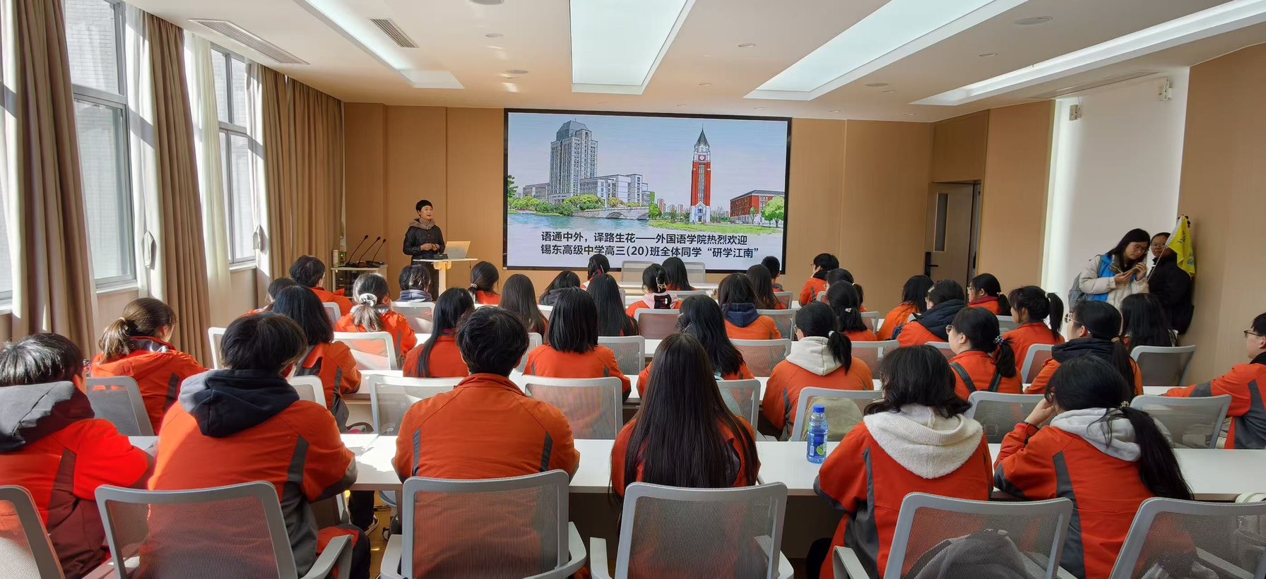 为搭建校际交流桥梁,助力高三学子明晰专业方向,11月18日上午,无锡市锡东高级中学高三(20)班50余名师生走进yl7703永利集团,开启研学江南之旅。活动由英语系朱芫老师主持。