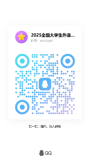 “综合能力赛项”参赛注册:登录大赛官网(https://ucc.fltrp.com/),参赛选手须在“选手报名/参赛”页面注册报名“综合能力赛项”,流程可参考官网报名指南,https://mp.weixin.qq.com/s/TIQ5SyRHBQhykzPi6qVWqA。并且,获取备赛资源。报名成功后请立即加入“2025全国大学生外语综合能力大赛QQ群”(群号553130291)。